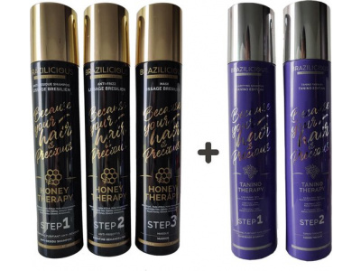 BraziliCious Honey Therapy Keratine 3 x 100ml & Brazilicious Titanium & Gold 48K Therapy 250 º