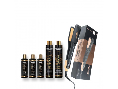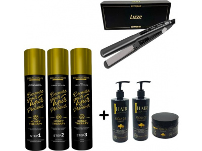 BraziliCious Honey Therapy Keratine 3 x 1000 ml + Lizze Stijltang 250 ° + Onderhoudsshampoo & Conditioner & Masqu & Argan oil