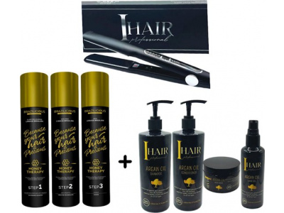 BraziliCious Honey Therapy Keratine 3 x 100 ml + I HAIR Stijltang 250 ° + Onderhoudsshampoo & Conditioner & Masqua