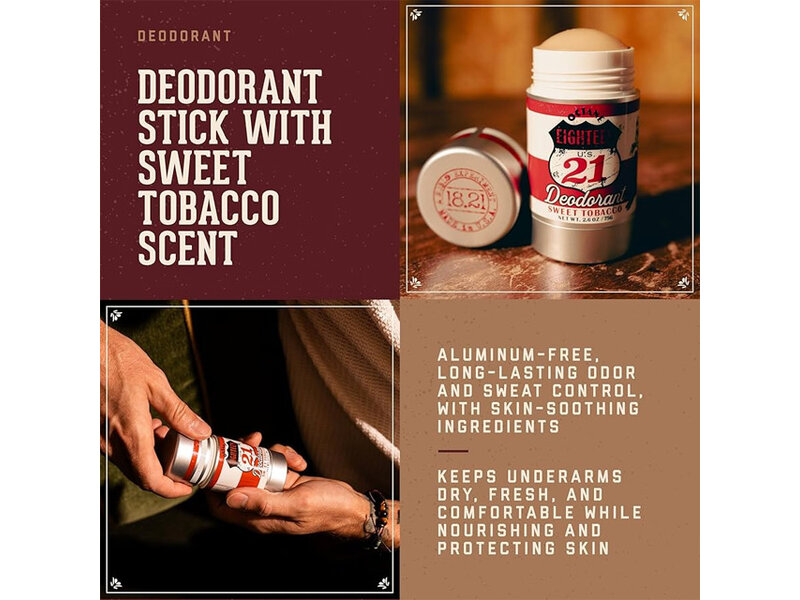 18.21 deodorant, 18.21 Sweet Tobacco, heren deodorant stick, premium mannen deodorant, langdurige heren deodorant, luxe mannenverzorging, Sweet Tobacco geur, 18.21 Man Made België